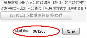 ,将收到的手机验证码输入到此框中, 点击验证,如图: